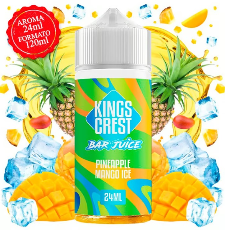 O aroma Kings Crest Pineapple Mango Ice combina a doçura do ananás com a da manga, para criar um sabor intenso e refrescante graças ao seu toque de gelo. Ele irá teletransportá-lo para os melhores paraísos tropicais.