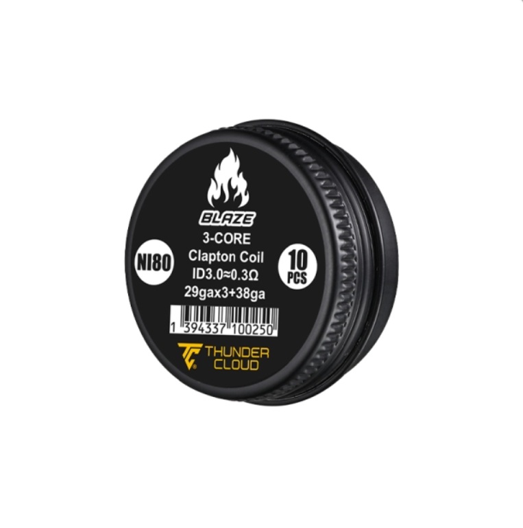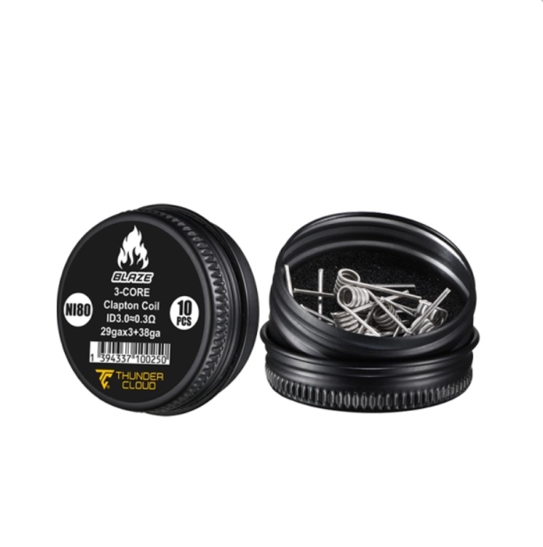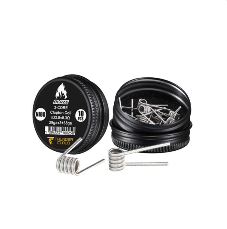 Resistências prémontadas em Ni80 perfeitas para o Blaze Solo 2 RTA. 3-Core Clapton: 29G×3+38G. 5 voltas em um eixo de 3.0mmØ. Valor de 0.30Ω em single coil. Vendidas por caixa de 10pcs.