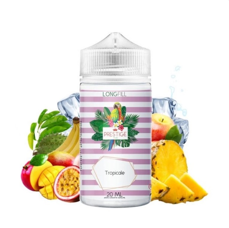 O Tropical de frutas Prestige é uma mistura de abacaxi, manga, maçã, banana, maracujá e jaca.